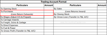 The profit and loss account starts with gross profit at the credit side and if there is a gross loss it is shown on the debit side. A Return outwards Journal or purchase returns journal or purchase debit day book is a prime entry book or a daybook which is used to record purchase returns. Electricity Charges Ac Debit Debit all expenses and losses for nominal accounts To Cash Ac Credit Credit what goes out for real accounts.